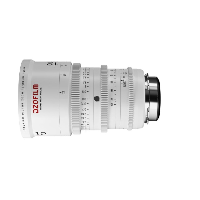 The DZOFilm Pictor 12-25mm T2.8 is a parfocal Super35 cine lens featuring a fast maximum aperture of T2.8 with an aperture range of T2.8 to T22. As you would expect from a cinema-style zoom, the lens is parfocal, meaning it holds focus throughout the zoom range. The internal focus design with floating elements virtually eliminates focus breathing. It covers a Super 35 image circle, comes standard with an interchangeable PL mount, and includes a Canon EF mount.