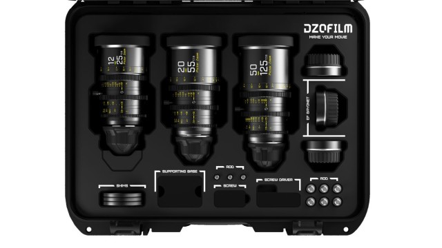 This Pictor T2.8 Super35 Zoom 3-Lens Bundle from DZOFilm consists of three zoom lenses — the 12-25mm, 20-55mm, and 50-125mm in a hardshell case. The lenses provide coverage of an extended zoom range with a relatively fast maximum aperture. All cover Super35 sensors and have similar lengths, weight, lens gear positions, and front outer diameter, making for fast lens swaps. Each lens comes standard with a PL mount and includes a Canon EF Mount for compatibility with a wide range of digital cinema cameras. The lenses hold focus throughout the focal length range and feature matching 16-blade irises for producing round out-of-focus highlights. This bundle includes a durable protective case for transport and storage.