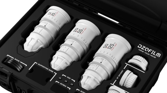 This Pictor T2.8 Super35 Zoom 3-Lens Bundle from DZOFilm consists of three zoom lenses — the 12-25mm, 20-55mm, and 50-125mm in a hardshell case. The lenses provide coverage of an extended zoom range with a relatively fast maximum aperture. All cover Super35 sensors and have similar lengths, weight, lens gear positions, and front outer diameter, making for…