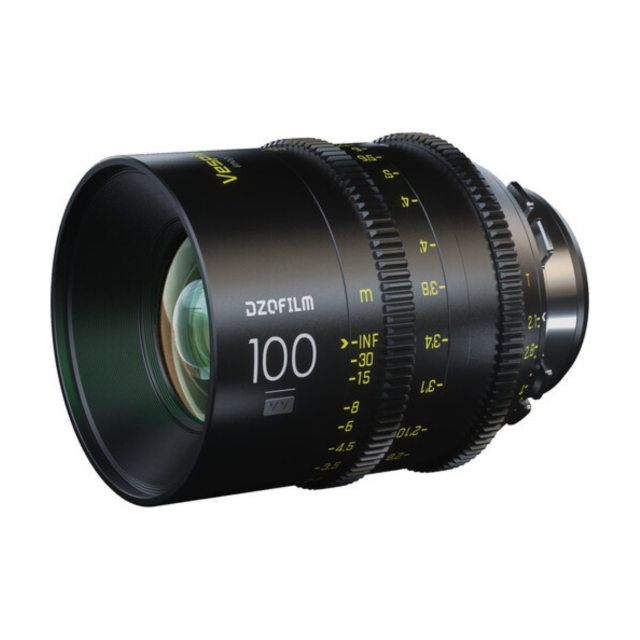 Relatively small and lightweight, the DZOFilm VESPID 100mm T2.1 Lens is part of the VESPID series of lenses from DZOFilm and is well suited for independent and high-end full-frame cinematography. The lens has an 80mm front diameter, allowing it to work with virtually any cine-style matte box. The small size makes this lens an attractive option when working with drones and gimbals, as well as when shooting handheld or run-and-gun. The interchangeable PL mount allows you to use the fully manual lens on a variety of modern and vintage cine cameras, while the full-frame coverage supports sensors that have an image circle up to 46.5mm for use on cameras with sensors up to full-frame without vignetting.