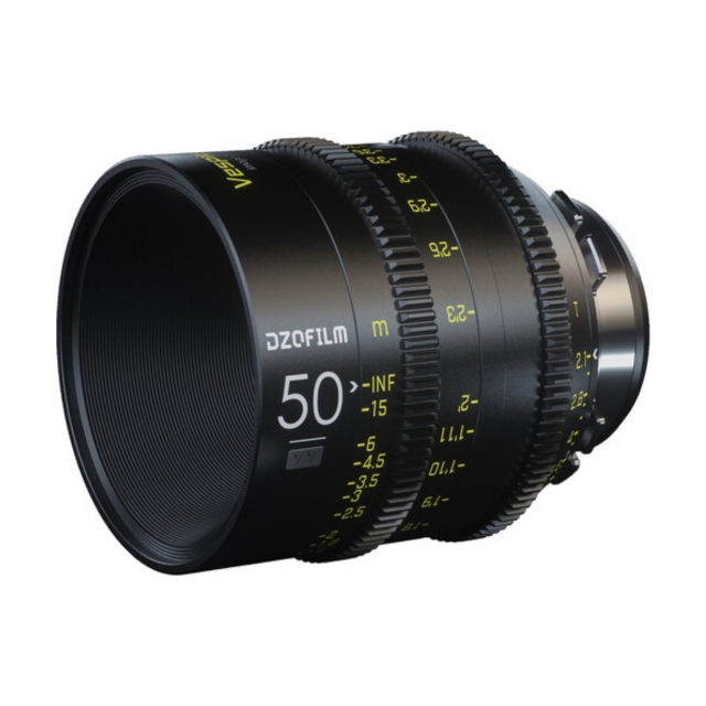 Relatively small and lightweight, the DZOFilm VESPID 50mm T2.1 Lens is part of the VESPID series of lenses from DZOFilm and is well suited for independent and high-end full-frame cinematography. The lens has an 80mm front diameter, allowing it to work with virtually any cine-style matte box. The small size makes this lens an attractive option when working with drones and gimbals, as well as when shooting handheld or run-and-gun. The interchangeable PL mount allows you to use the fully manual lens on a variety of modern and vintage cine cameras, while the full-frame coverage supports sensors that have an image circle up to 46.5mm for use on cameras with sensors up to full-frame without vignetting.