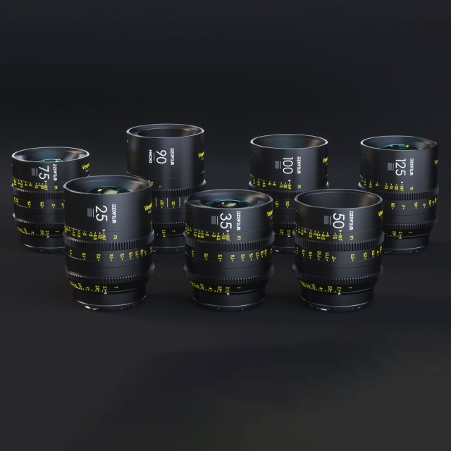 This DZOFilm VESPID 7-Lens Kit B is suitable for use on productions ranging from independent to studio films. The included 25, 35, 50, 75, 100, 125, and 90mm macro PL mount lenses cover full-frame sensors and project a 46.5mm image circle yet are small and lightweight, making them an excellent choice for handheld, gimbal, and drone work.
