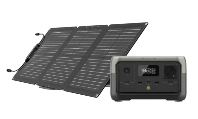 The EcoFlow RIVER 2 with 60W solar panel is a compact and lightweight portable power solution designed for travel, outdoor use, and emergency backup. With a 256Wh capacity, 300W continuous output, ultra-fast 1-hour AC charging, and long-life LFP battery technology, it reliably powers essential devices anywhere while allowing efficient off-grid charging via the included high-efficiency 60W solar panel.
