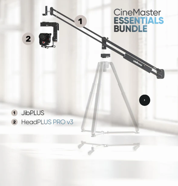 Edelkrone CineMaster Essentials Bundle: A fundamental cinematic solution featuring the JibPLUS and HeadPLUS PRO v3, perfect for professional filmmakers seeking smooth, precise camera movement and control.