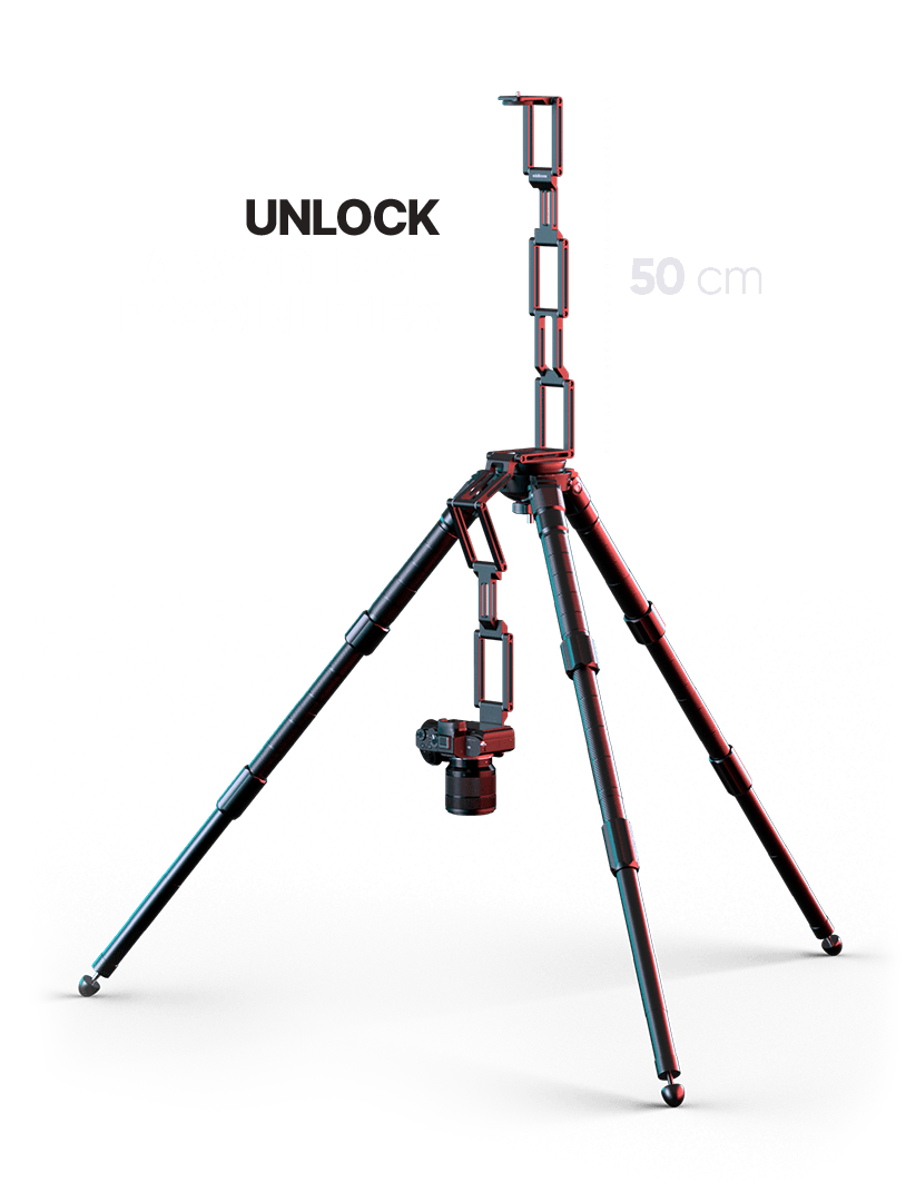 Don't let traditional tripod heads restrict your creativity. Effortlessly change your camera height in an instant, without dealing with tripod legs, and unlock bird's-eye angles you couldn't achieve otherwise.