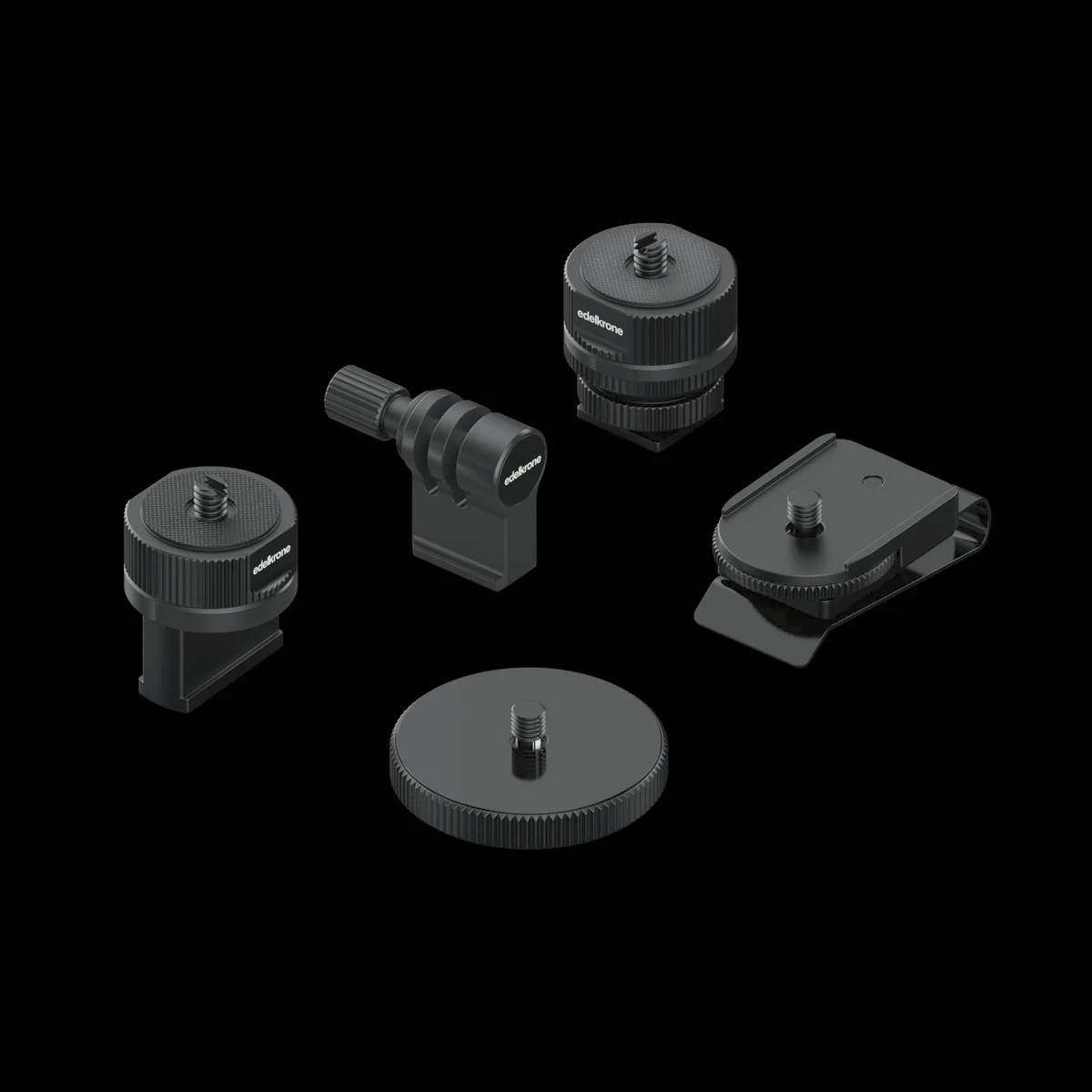 The EdelKrone PhoneCLIP KIT is an ultra-compact, all-aluminum mounting system for phones, action cameras, and lightweight gear. Featuring modular adapters and versatile mounts, it lets you attach your devices to hats, metal surfaces, cold shoes, tripods, or camera rigs—delivering professional durability, flexibility, and portability in a pocket-sized package.