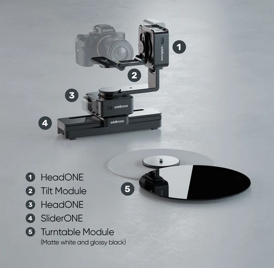 Edelkrone SlideAction Bundle - Complete: Advanced motion control system including HeadONE v2 (x2), SliderONE v3, TurnTable Module, and Tilt Module for versatile, precision-driven cinematic shots.