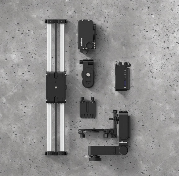 Complete Edelkrone SlideMaster Bundle featuring SliderPLUS PRO Long, Motor Module, Vertical Module, and HeadPLUS v3 for precise and versatile motion control.