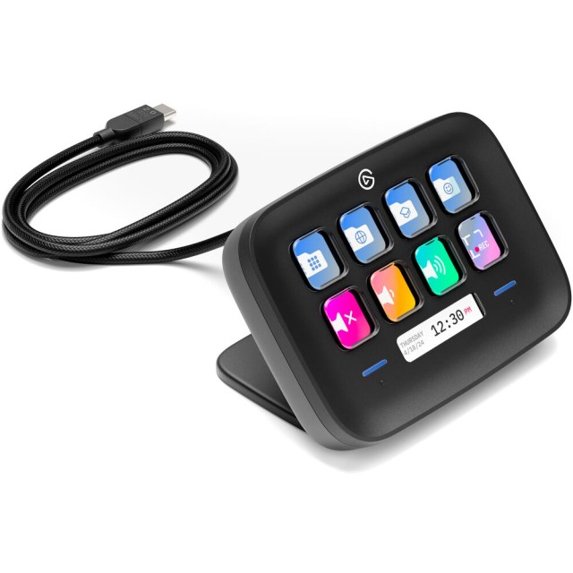 Elgato Stream Deck Neo (Black) is a compact, customizable 8-button controller: 8 LCD buttons with touch bar, real-time information tracking (notifications, time zones, viewer count, etc.), preset actions for meetings/music/streams, adjustable stand, plug-and-play USB-C for Windows/macOS.