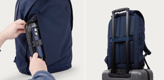 Constructed from Urban Ripstop Fabric, a 420D high-density micro ripstop nylon, and featuring weatherproof main zippers, the backpack is durable and resistant to the elements. Its full clamshell opening and internal stretch pockets provide organized packing, while the vertical Quick Access Pocket allows fast retrieval of essentials when slinging the bag to the front.