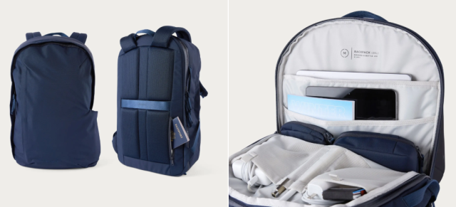 Comfort-focused features include S-curve shoulder straps, an adjustable sternum strap, and a contoured back panel with molded foam air channels and spacer mesh, ensuring all-day comfort and airflow. Travel-ready design elements include a hidden RFID-blocking stash pocket, luggage pass-through for easy airport navigation, and grab-and-go side handles. A padded laptop compartment fits devices up to 16 inches, keeping your tech safe and organized. Sized to comply with most airline luggage bins, this backpack delivers convenience, protection, and style for any journey.