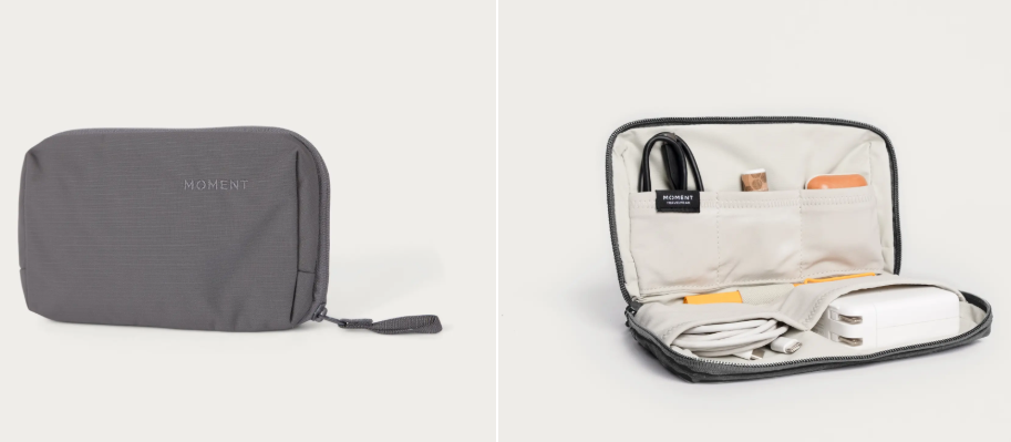 The Moment Everything Mini Tech Organizer (Grey) is a micro tech pouch built for creatives and travelers who like to pack light without sacrificing organization. Its compressible design allows it to nest seamlessly inside the larger Moment Tech Organizer or be used independently. Despite its ultra-compact footprint, it provides stretch pockets ideal for bulkier tech like chargers and power banks, keeping all your essentials in one place. Constructed from rugged micro ripstop fabric with two layers of waterproofing, this mini organizer protects your gear from the elements while maintaining a tidy, lightweight setup. Perfect for minimalist setups, day trips, or travel, the Mini Tech Organizer ensures your small electronics are always easy to access.