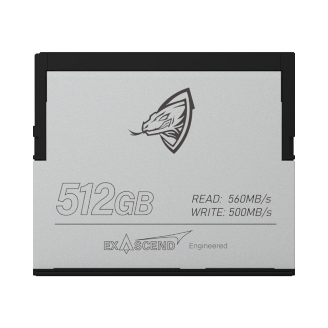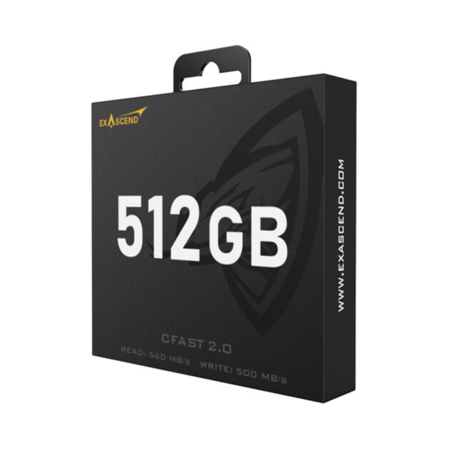 The 512GB Exascend/Archon CFast 2.0 Memory Card from Vaxis is compatible with RED, Blackmagic Design, ZCam, Canon C200, Canon C300, and other devices that are compatible with the CFast 2.0 standard, which utilizes the SATA III 6 Gb/s interface. It can handle raw video and features maximum read speeds of up to 560 MB/s, maximum write speeds of up to 500 MB/s, and minimum write speeds of up to 450 MB/s.