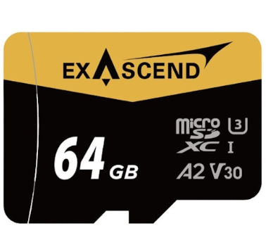 The Exascend EX64GUSDU1 Catalyst 64GB microSDXC UHS-I (V30/U3) card delivers 170 MB/s read and 140 MB/s write for 4K RAW video and action shots. Rugged (-25°C~85°C), 3D TLC, A2-ready, it ensures seamless apps and high-speed transfers in extreme environments.