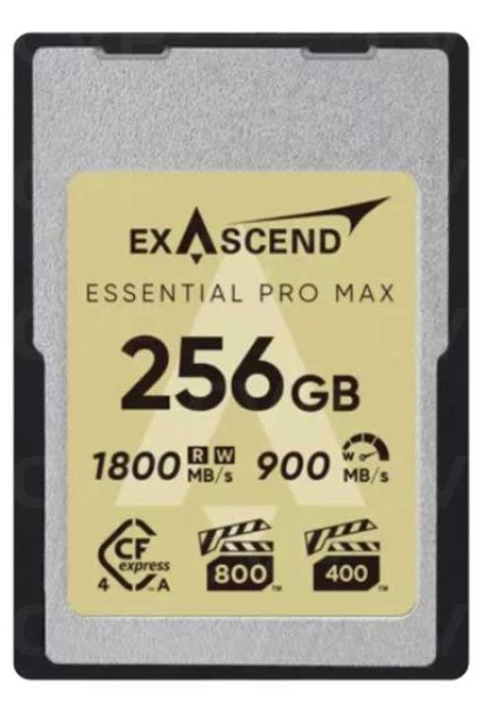 The Exascend Essential Pro Max CFexpress Type A 4.0 256GB memory card delivers high-speed, reliable performance for professional photographers and videographers working with 8K and 12K content. Featuring a PCIe Gen4 x1 interface with up to 1,800 MB/s read and write speeds, VPG400 and VPG800 certification, and advanced thermal management, it ensures smooth, drop-free RAW recording and fast data transfers in demanding production environments.