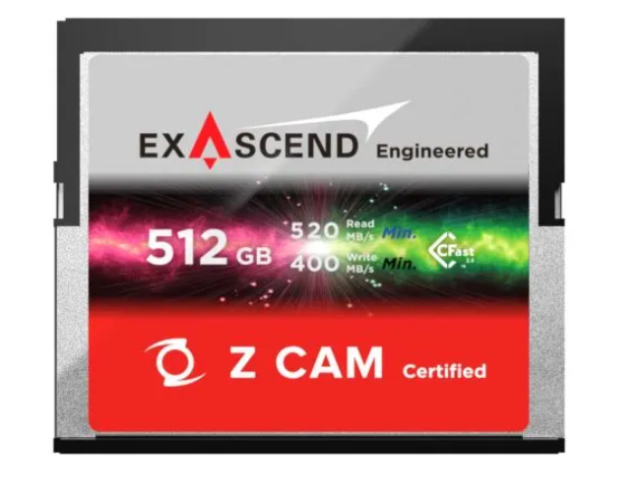 The Exascend EXSZ3X512GB 512GB Z CAM CFast Card delivers 520 MB/s sustained performance for drop-free cinematography. Features Adaptive Thermal Control (ATC) and optional factory data rescue. Z CAM-certified with industrial-grade durability for extreme environments.