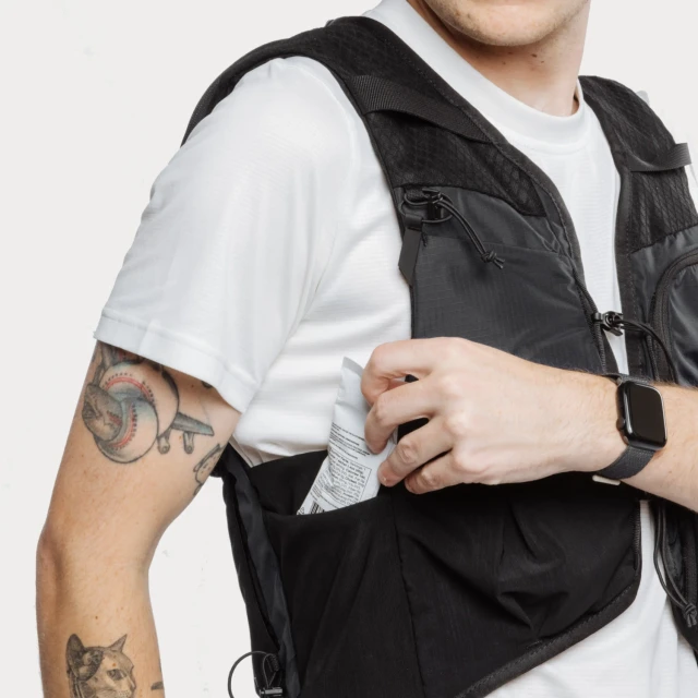 Inspired by cycling jerseys, they allow access from the back without having to take off the vest.