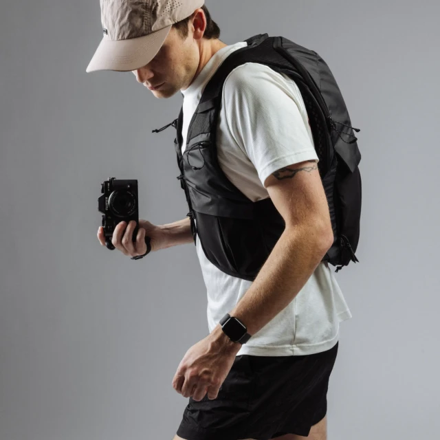 The Exposure 10L Camera Vest is designed to keep you moving and give you quick access to your gear. Inspired by the athletic fit of running vests and the functionality of technical fishing vests, it keeps your camera gear close to your body and moves with you.