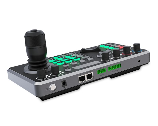Equipped with a 4D joystick, the KBC20N allows precise pan, tilt, zoom, and rotation control, while customizable buttons provide flexible configuration for frequently used commands. The controller supports up to 255 cameras, offering scalability for large-scale productions. Connectivity options include LAN, RS232/RS485/RS422, and TALLY/CONTACT ports, and the device supports PoE (Power over Ethernet), simplifying installation and power management. The intuitive button layout and web-upgradeable firmware further enhance operational efficiency.