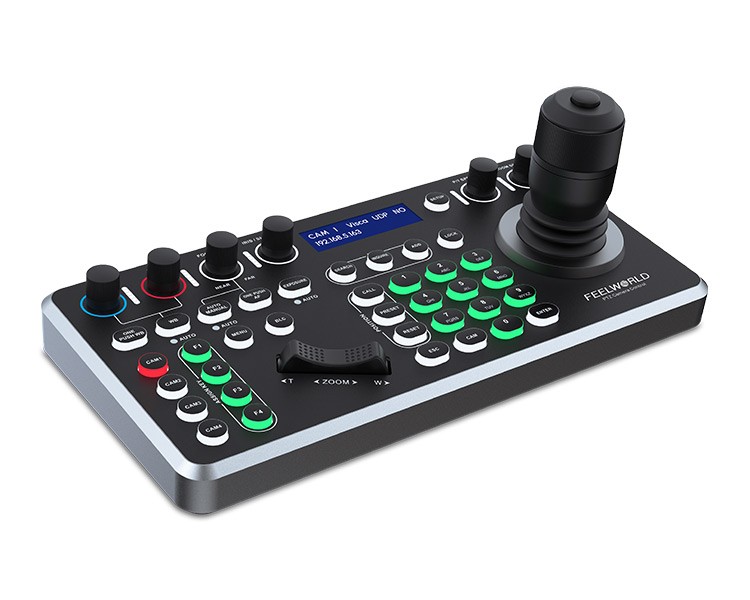 The Feelworld KBC20N is a professional PTZ camera controller designed for precise, flexible, and scalable control of up to 255 cameras. Featuring multiple control protocols, a real-time LCD display, a 4D joystick, and PoE support, it streamlines live video production workflows with intuitive operation and reliable connectivity.