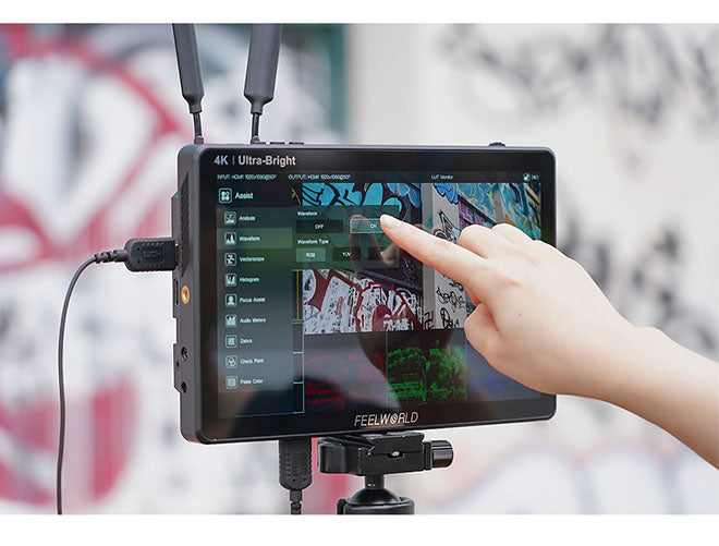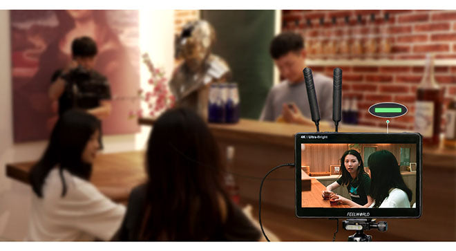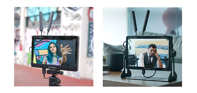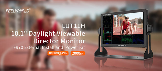 FEELWORLD LUT11H is a 10.1-inch with full touch screen, ultra brightness 2000nit professional camera monitor. Supports up to 4K@60Hz HDMI signal input and output. Provides a series monitoring and framing tools with new menu layout, various numerical parameters are clear at a glance, making the operation easier. There is a F970 external install and power kit on the rear of LUT11H, which can install such as wireless transmission, LED light, etc. It combines the monitor with wireless transmission to get rid of unnecessary cables, which is perfect for director monitoring, 1st AC to focus pulling in the film crew. The dual battery plates design can install two F970 batteries at the same time for long-time power supply even outdoors. Ideal for crew field shooting, monitoring and post-production.