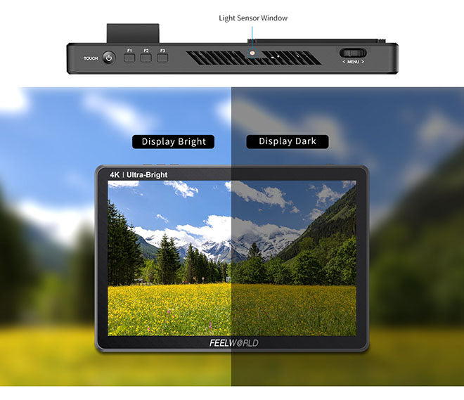 Built-in an ambient light sensor, from a dim studio to a sunny location, from midnight moonlight to noon sunshine, it can automatically adjust the monitor brightness to fit your filming environment.