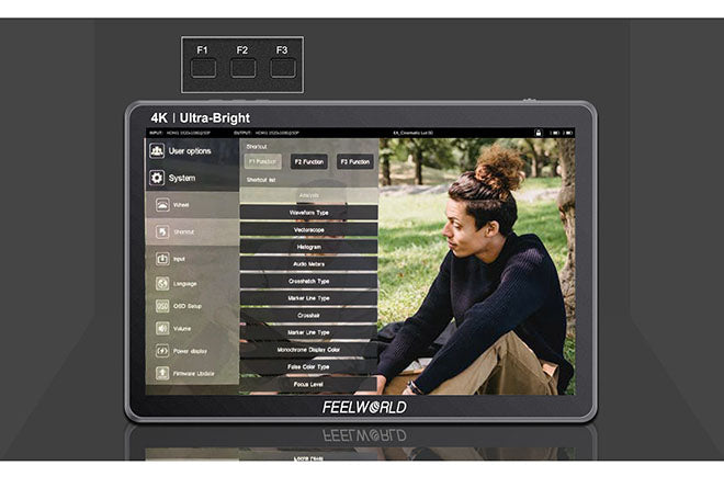 On the top of LUT11H comes with three custom shortcut buttons , the photographer can set the shortcut functions in advance according to the actual needs of the shooting site, and quickly call up the required functions during the shooting process, greatly improving the shooting efficiency.