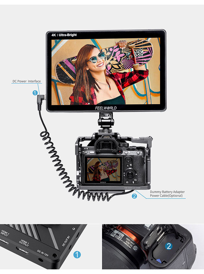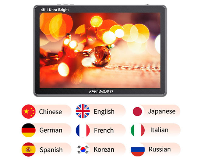 The monitor is equipped with 3 standard 1/4”mounting threads (bottom, right, left side), you can easily mount it on the camera or other types of equipment with a magic arm, bracket, etc.. Meet the different monitoring for photographer or director.