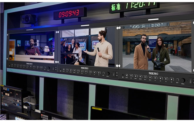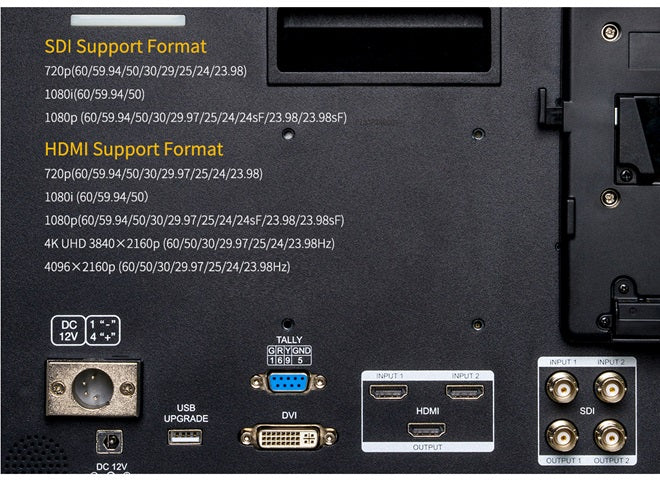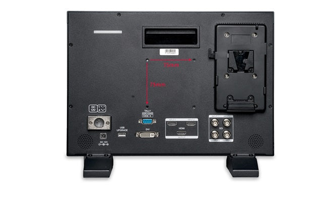 The rear of monitor with 75x75mm VESA mount points, you can mount it in rack or hang it on the wall. Ideal for broadcast studio or live production.