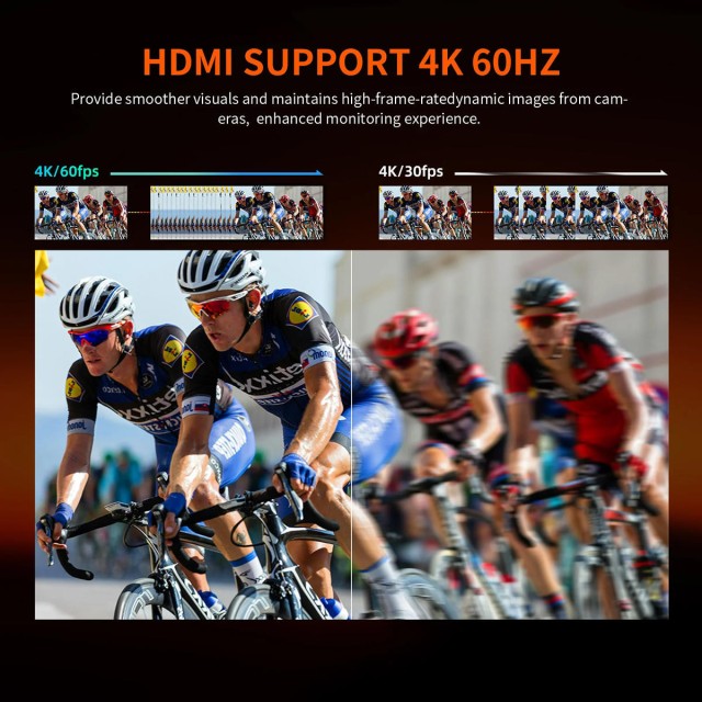 HDMI 2.0 supports 4K video at 60Hz frame rate for smoother, more detailed images.