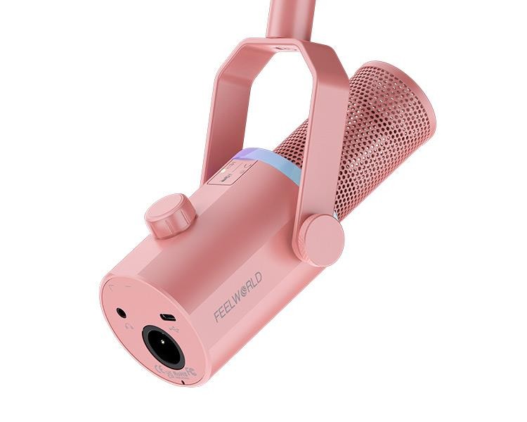 FEELWORLD PM1 with fashionable and compact design, providing natural, clean sound and rich functions. Suitable for various scenario applications, it is ideal for podcast, singer, game player, and voice actors to recording and live streaming. Fresh and lovely pink makes you love it so much.