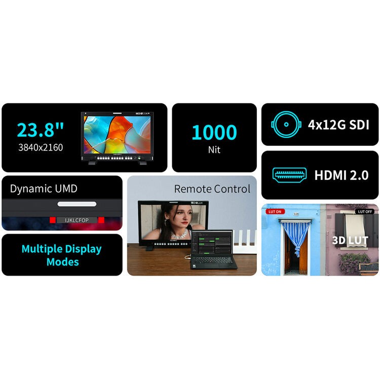 The FeelWorld S24 is a 23.8" 4K/8K high-brightness IPS video monitor designed for professional production and post-production. Featuring quad 12G-SDI inputs/outputs, HDMI I/O, 1000-nit brightness, EL Zone exposure system, 3D LUT support, and multi-camera multiview, it is ideal for live broadcast, on-set monitoring, and color-critical work…