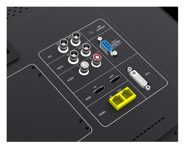 High-end overhead monitor with 21.5 IPC LED panel (1920x1080, 16:9, 250 cd/m², 178° viewing angles, 3000:1 contrast) and 1x 3G-SDI, 1x 4K HDMI, DVI, RS-485 and audio (L/R) inputs. The monitor also offers signal commands display (UMD and Text-Tally; TSL 3.1/4.0), 3G-SDI/HDMI outputs, integrated speaker, headphone output, V-Mount battery plate (optional Gold Mount), power input with XLR4 connector, and rugged aluminum bezel. Of course, there are features for focus assist, zoom, pixel-to-pixel, image rotation, half-frame checking, etc. Optionally, a customized aluminum case can be supplied.