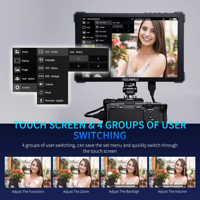 Feelworld T10 is a 10.1" touchscreen monitor with Full HD resolution. It features an aluminum housing, lightweight and durable; supports HDMI input and output up to 4K@60Hz resolution and provides a variety of tools for viewing and compositing footage. On the back of the T10 monitor is an external F970 installation and power supply kit, which allows installation…
