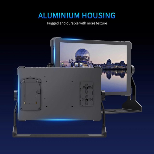 The monitor is equipped with 4 standard 1/4" mounting threads (top, bottom, right side, left side), you can easily attach it to your camera or other types of devices with an arm, bracket, etc. The back of the monitor with 75x75mm VESA mounting points makes it easy to mount to a stand or wall.