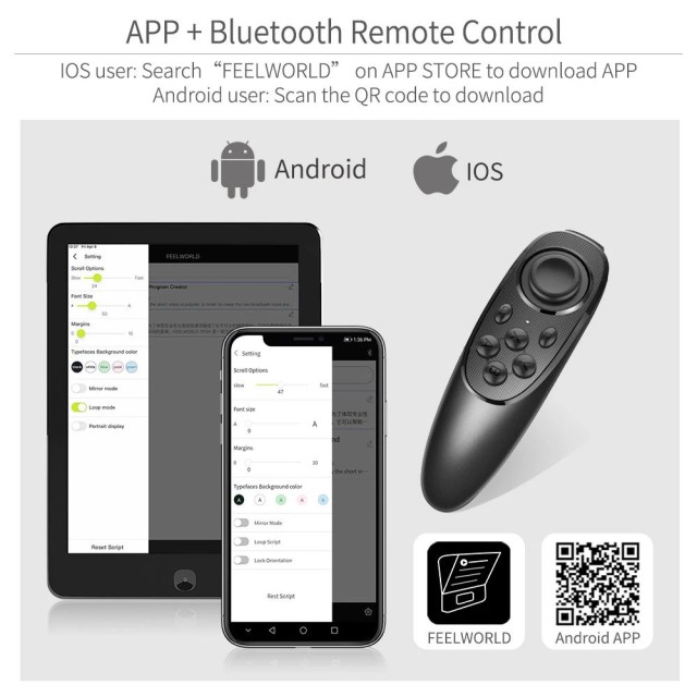 Exclusive Stimulus APP (name: FEELWORLD), downloadable to smartphone and tablet, compatible with IOS & Android.