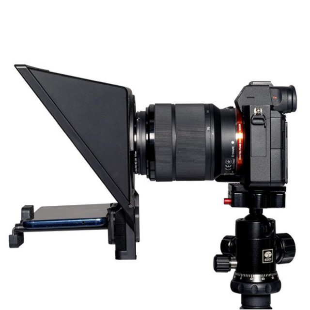 * Three 1/4-20″ threads at the bottom of teleprompter