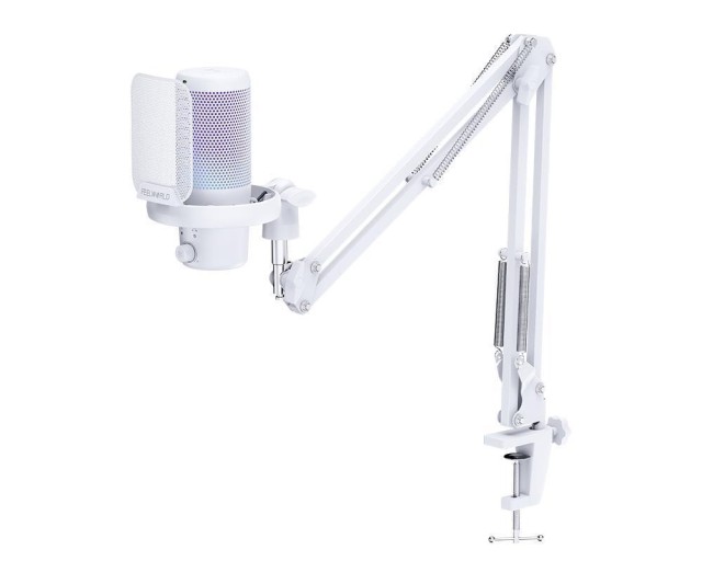 The easy-to-position metal boom arm stand can adjust to support variety of setups. You can quickly pull the microphone near your mouth when in use, or fold it away to save more space.