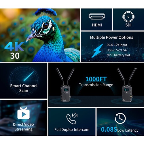 Supports up to UHD 4K30 / 1080p60 Video – Crisp, high-resolution image transmission