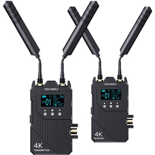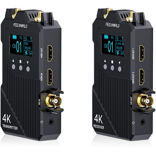 The Feelworld WT1S is a professional SDI/HDMI wireless video transmission system featuring up to 1000 ft range, 0.08-second ultra-low latency, and full-duplex intercom communication. It supports UHD 4K30 / 1080p60 video, connects up to four receivers, and allows iOS/Android app monitoring and recording—ideal for filmmaking, live production, and broadcast workflows.