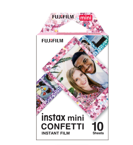 Special edition Instax Mini film with colorful confetti border