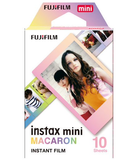 The Fujifilm instax mini Instant Film (Macaron) adds a fun and creative touch to your instant photography with soft pastel-colored borders inspired by dessert-themed macaron colors. Designed for use with all Fujifilm instax mini cameras, this pack includes 10 sheets of instant color film that produce credit card-sized prints ideal for sharing, decorating, or collecting memories.