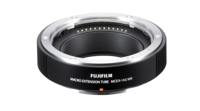 The Fujifilm MCEX-18G WR Macro Extension Tube adds 18mm of extension to G-mount lenses, allowing closer focusing distances and increased maximum magnification for macro photography, while maintaining autofocus and auto-exposure functionality.