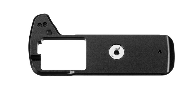 The grip maintains full access to both the battery and memory card compartments, eliminating the need for removal during routine changes. Its base features a 38mm-wide dovetail protrusion that is fully compatible with Arca-type tripod mounts, allowing quick and convenient mounting without requiring an additional plate.