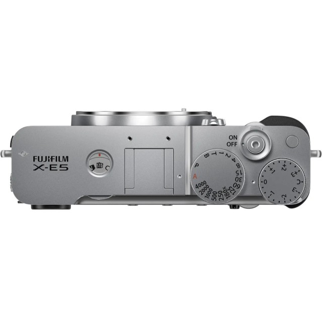 The FUJIFILM X-E5 is a lightweight and compact digital mirrorless camera weighing approximately 445g, featuring a 40.2 megapixel "X-Trans™ CMOS 5 HR" sensor with BSI technology and a high-speed "X-Processor 5" image processing engine. Colour: silver. On…