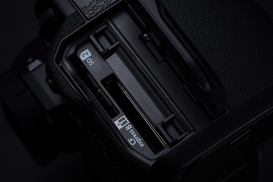 X-H2S has one CFexpress™ Type B memory card slot and one UHS-II SD memory card slot. Draw out the full potential of X-H2S’s incredibly fast burst mode and its professional video performance with CFexpress™ Type B cards.