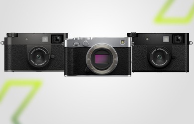 The X half has a new interface that is controlled by swiping and scrolling on the two rear LCDs. Smooth touch controls allow the user to intuitively change shooting settings, film simulation and provide comfortable operation of the compact camera.