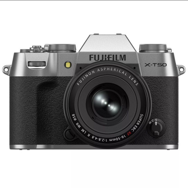 The FUJIFILM X-T50 in silver, paired with the XC15-45mm lens, provides a versatile and stylish solution for capturing high-quality images and videos. This combination is perfect for those seeking a compact, high-performance camera system with a touch of classic design.