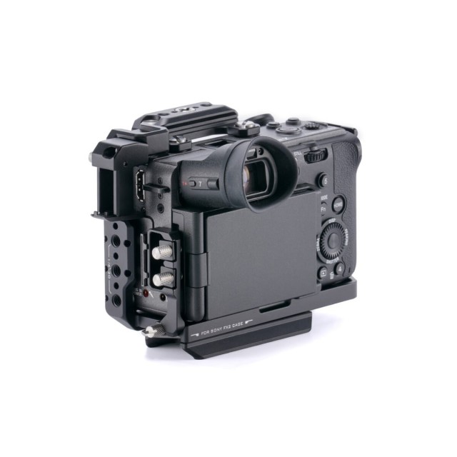 The cage design is fully compatible with all key features of the Sony FX2. It allows direct access to all ports, including HDMI, USB-C, XLR inputs, and the electronic viewfinder (EVF), without the need to remove the frame. The cage thus ensures comfortable control even during demanding filming.