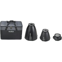 The Godox Knowled Narrow Angle Reflector Kit offers professional photographers and videographers versatile lighting control for Godox MG1200BI, MG2400BI, MG1200R, and MG2400R monolights. The kit includes 15°, 30°, and 60° reflectors, each designed to shape the beam spread for different lighting needs. The 15° reflector delivers a focused narrow beam ideal for selective lighting or long throw, the 30° reflector provides a moderate spread for medium subjects, and the 60° reflector produces a wide beam to illuminate larger areas or groups. The reflectors feature a silver interior for optimal light reflection and a built-in speed ring for easy quick-twist mounting. Lightweight and portable, the kit comes with a convenient carry bag, making it perfect for studio or on-location shoots.